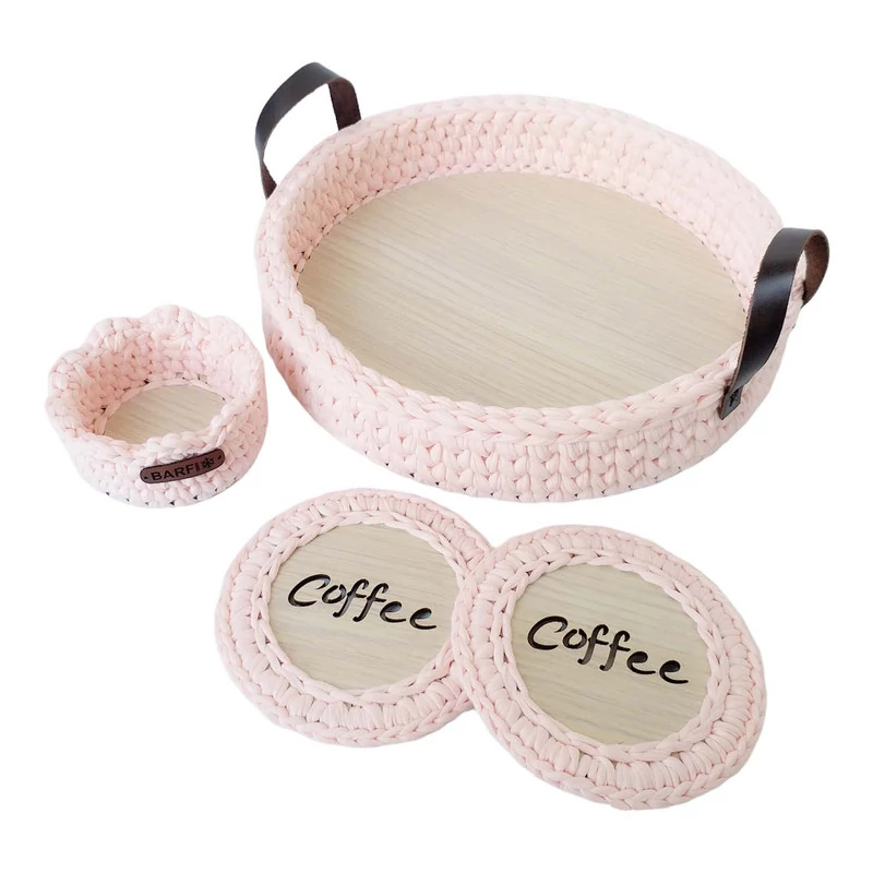 سبد بافتنی مدل سینی چای و قتدان و زیرلیوانی کد Tray Set-01 مجموعه 4 عددی