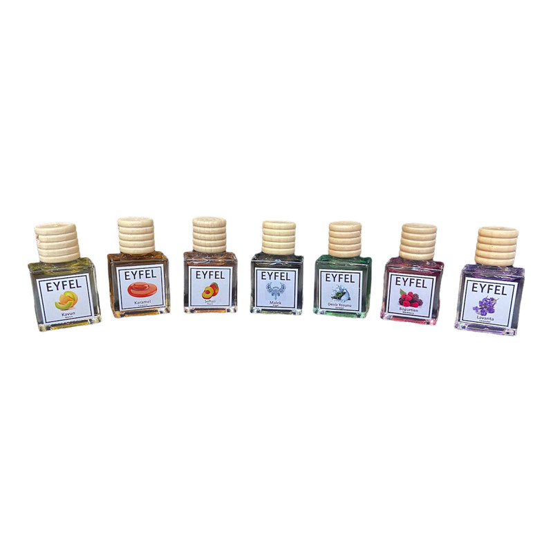 خوشبوکننده هوا خودرو ایفل مدل طالبی و کارامل و هلو و آنجل و جلبک دریایی و شاتوت و لوندر حجم 10 میلی لیتر بسته 7 عددی