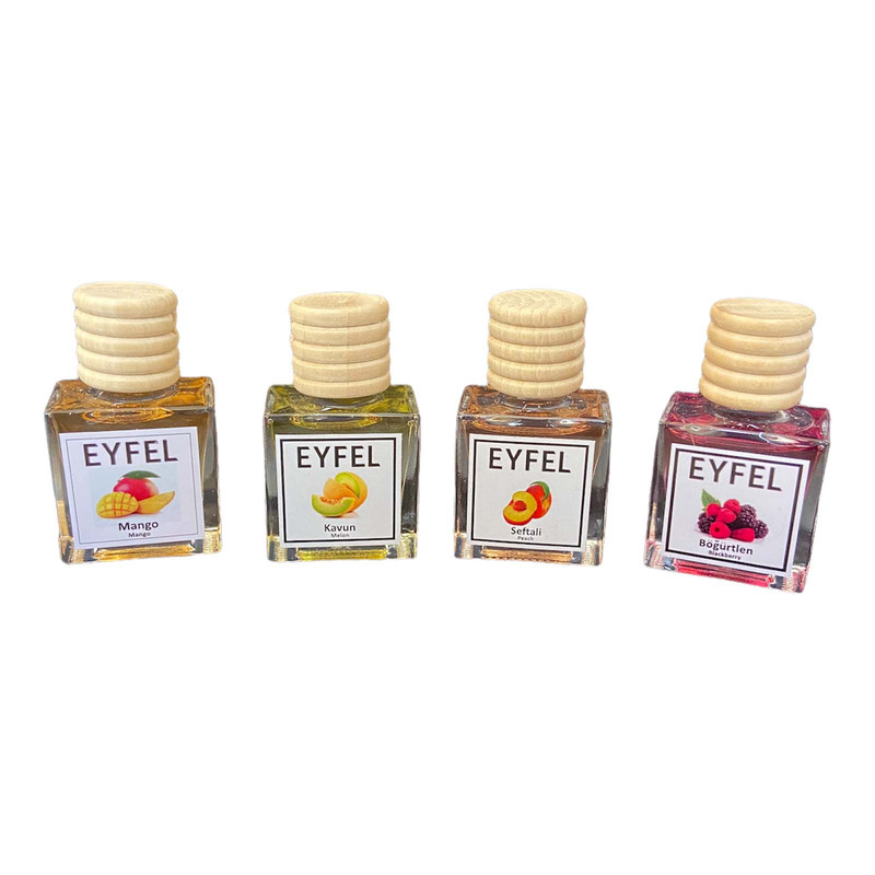 خوشبوکننده هوا خودرو ایفل مدل انبه و هلو و شاتوت و طالبی کد Mango-Blackberry-Melon-Peach حجم 10 میلی لیتر بسته 4 عددی