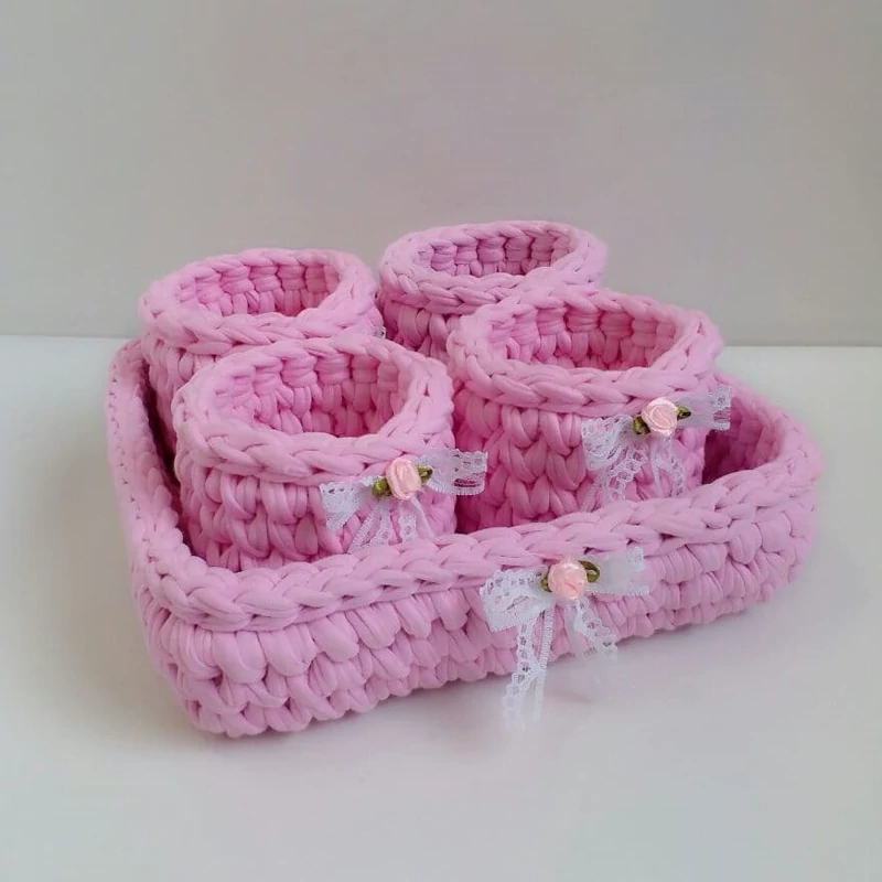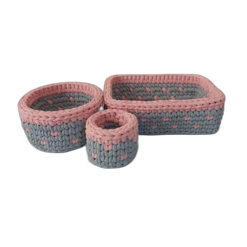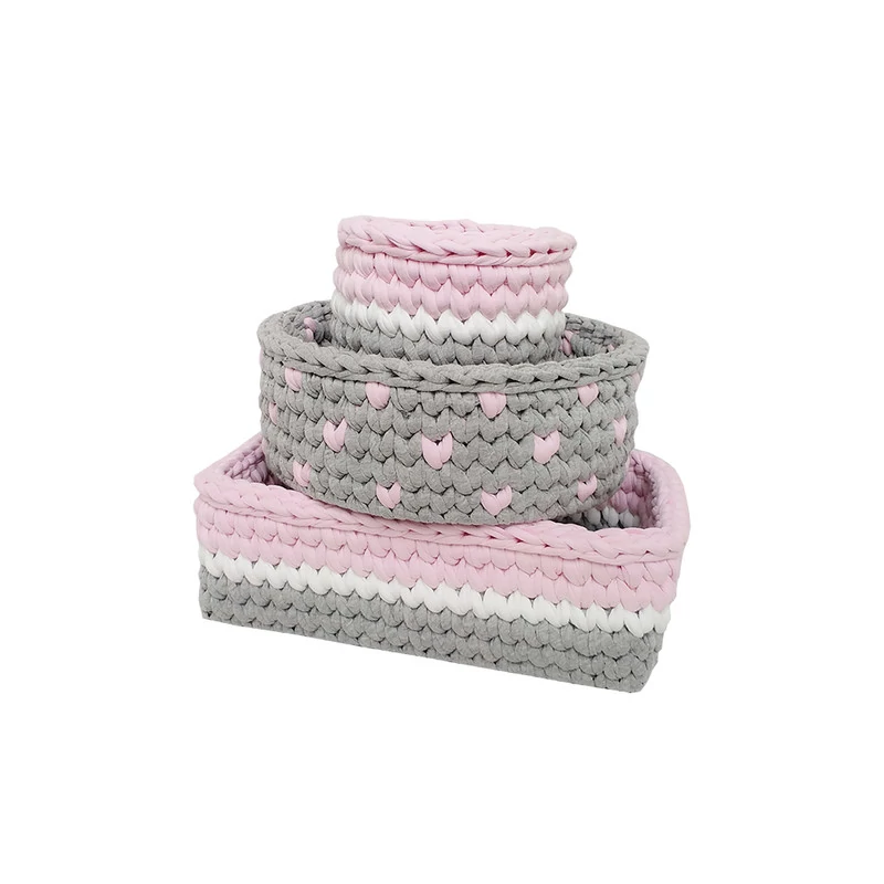 ست سبد وسایل کودک مدل تریکو قلاب بافی مجموعه 3 عددی