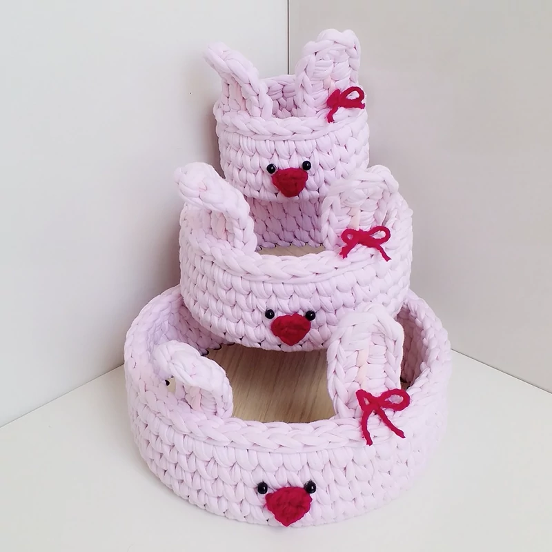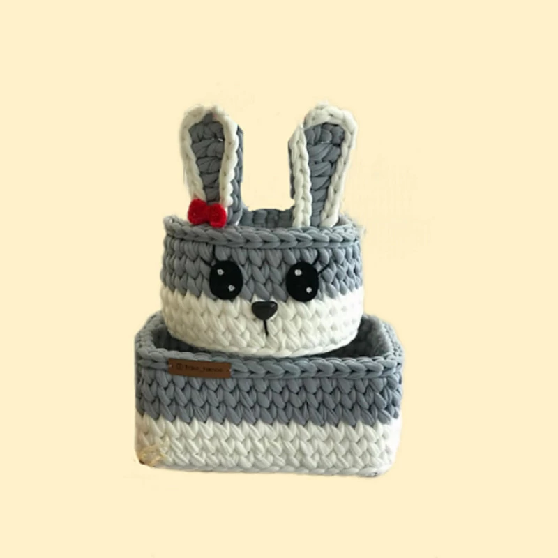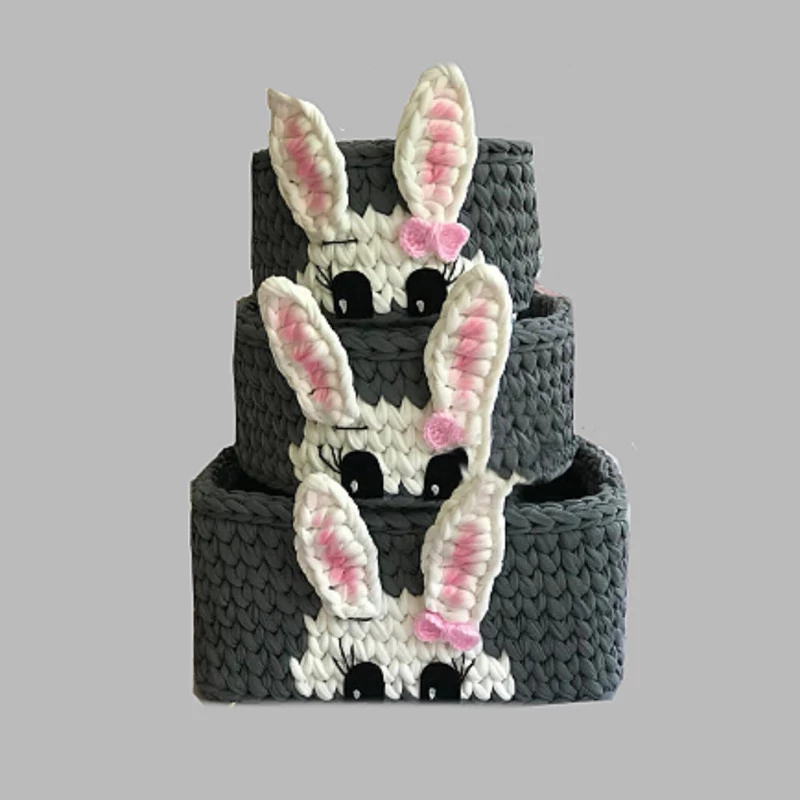 ست سبد وسایل کودک مدل تریکو طرح خرگوش مجموعه 3 عددی