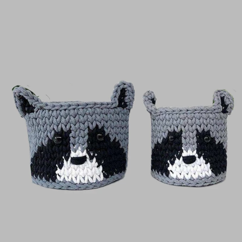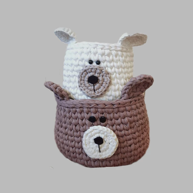 سبد قلاب بافی تریکو مدل خرس مجموعه 2 عددی(سبد دستبافت نظم دهنده وسایل)