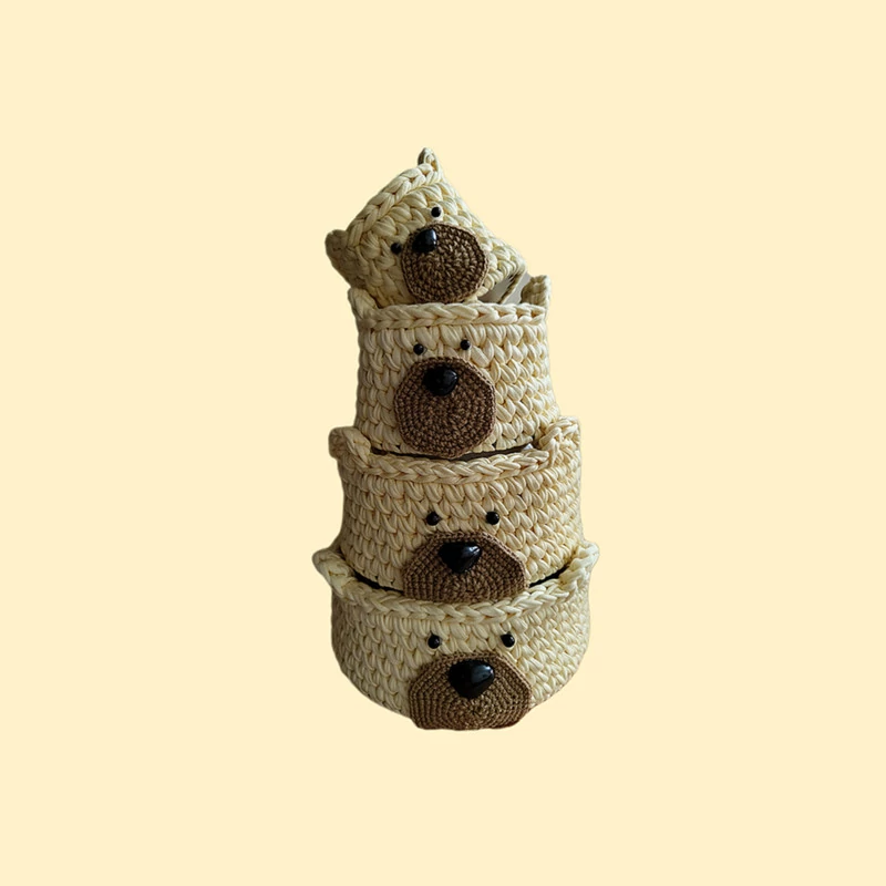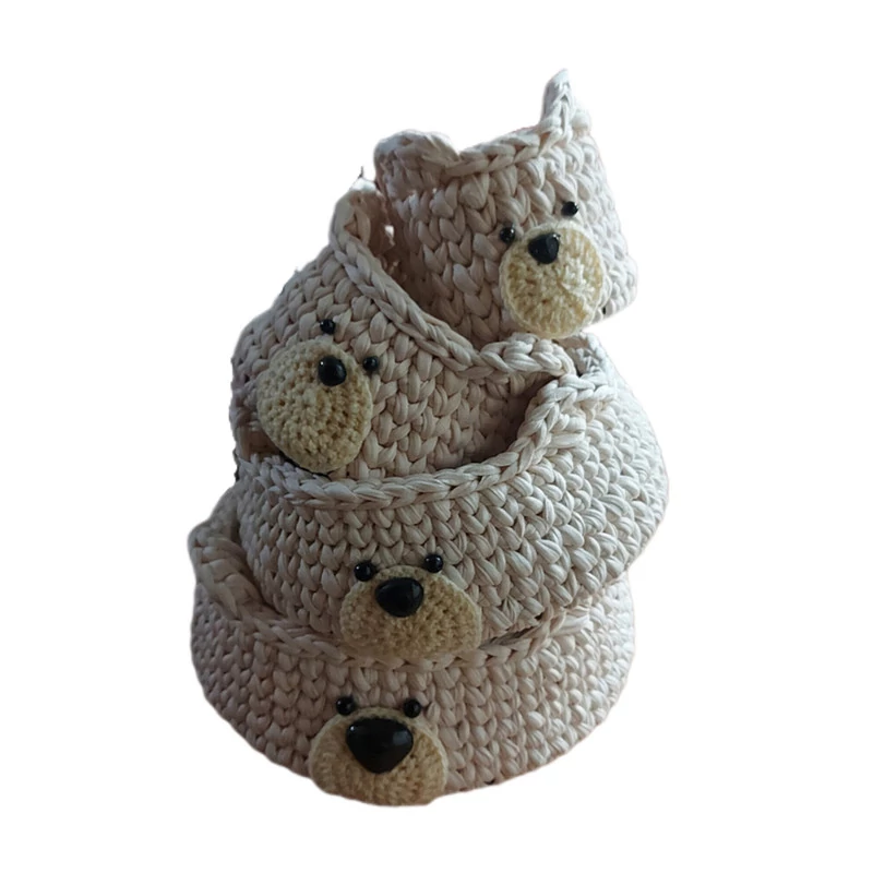 ست سبد وسایل کودک ،طرح خرسی قلاب بافی مجموعه 4عددی