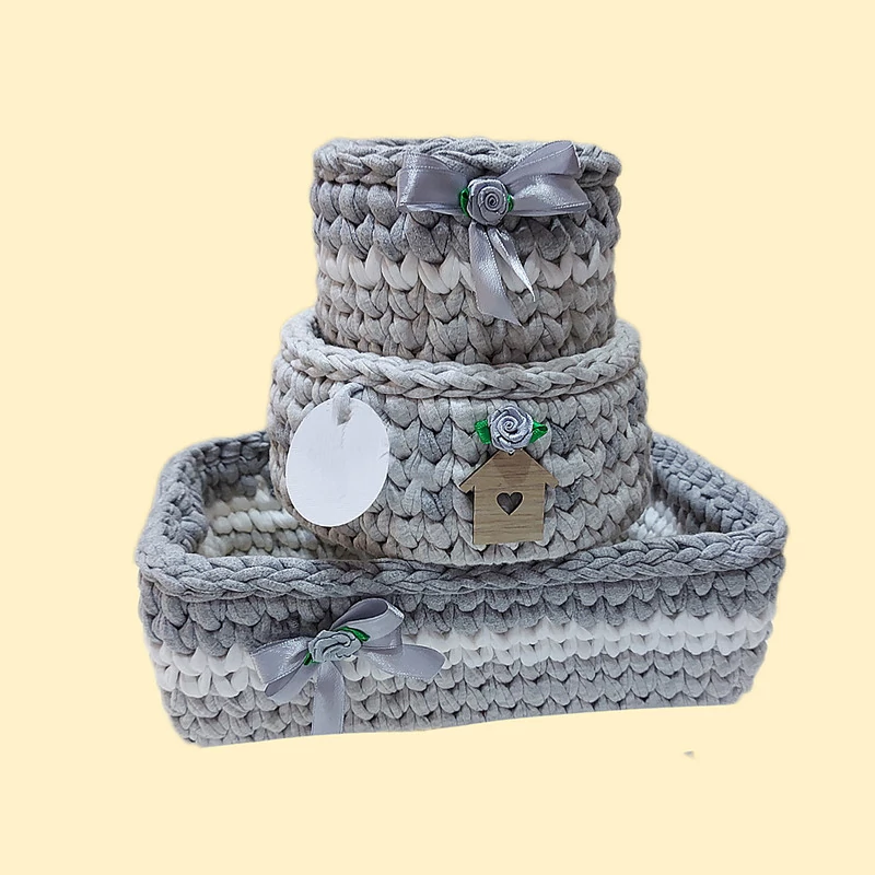 سبد تریکو بافته شده از تریکو با کیفیت . قابلیت شستشو با اسفنج و شامپو را دارد.ایستادگی و محکمی دیواره از ویژگی های محصول است. قطر کار 25 در 15 و 10 سانتیمتر است. مناسب برای نظم دهی لوازم بهداشتی کودک و ارایشی است