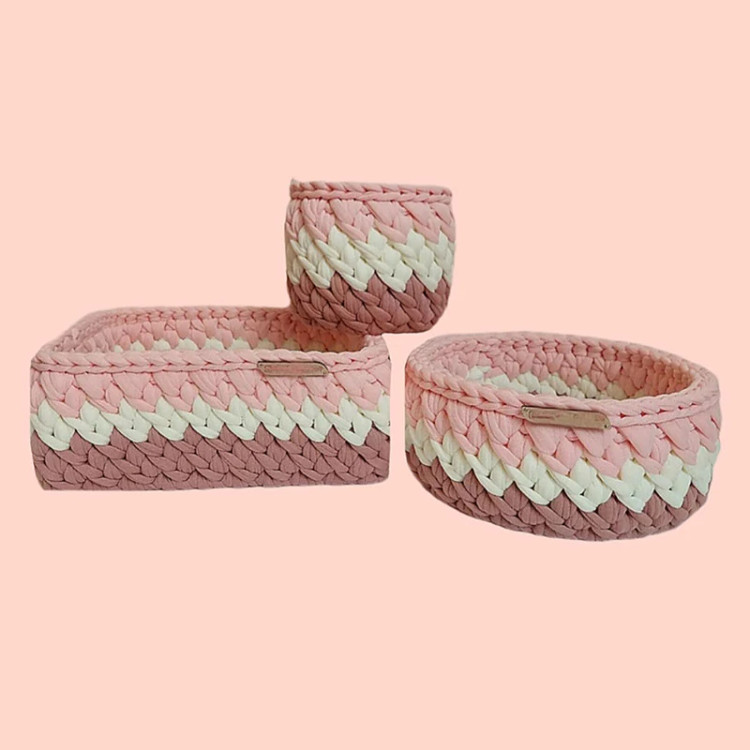 سبد قلاب بافی تریکو طرح نوزادی کج راه کد 020 مجموعه 3 عددی