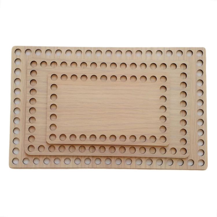 برای بافت راحت تر و زیبایی بهتر سبد های تریکو بافی از کفیهای مخصوص استفاده میشود. نکته مهم این محصولات رعایت فاصلهی مناسب بین سوراخها و قطر آنها است که به زیبایی بافتهی شما کمک خواهد نمود. در این پک، یک کفی مستطیل به ضلع 24x15سانتی متر، یک کفی مستطیل به ضلع 20x12سانتیمتر و یک کفی مستطیل به ضلع 15x9 سانتیمتر و با ضخامت استاندارد 2.8 میلی متر قرار داده شده است.