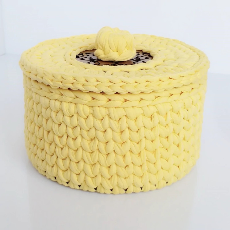 سبد قلاب بافی تریکو مدل در دار (سبد دستبافت نظم دهنده وسایل)