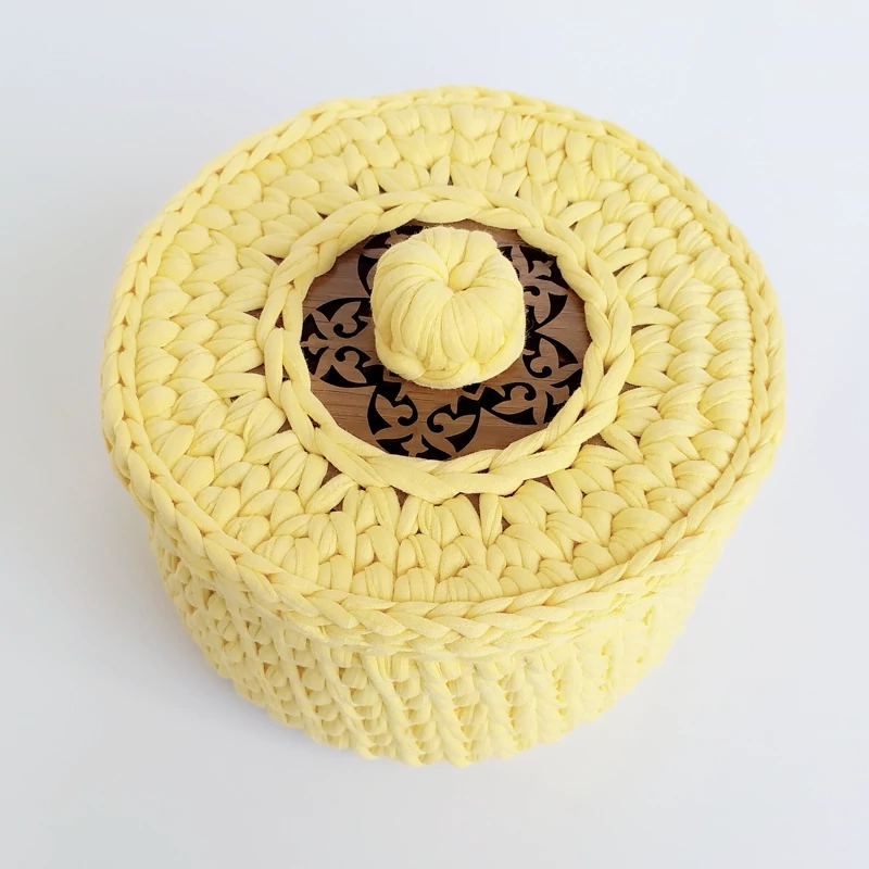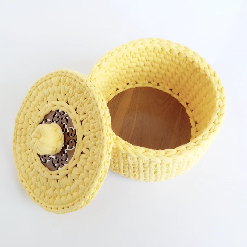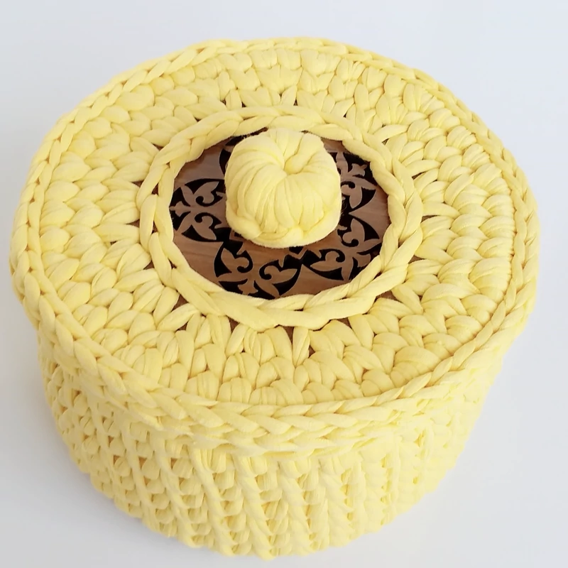 سبد قلاب بافی تریکو مدل در دار (سبد دستبافت نظم دهنده وسایل)