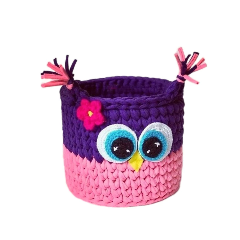 سایر توضیحات: سبد بافته شده از کاموای تریکو به طرح جغد زیبایی خاصی به اتاق کودکان میدهد.در ابعاد 20 در 20 در 15 سانتیمتر میباشد.با کیفیت بافت بالا و نخ باکیفیت و بسیار چشم نواز