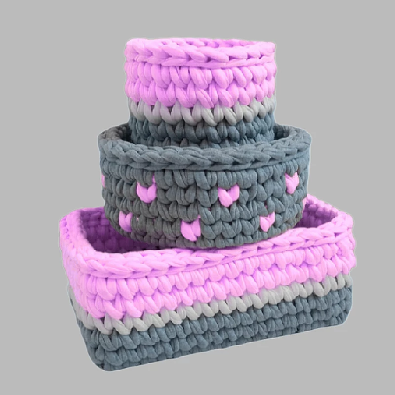 مجموعه سبد های تریکو طرح سیسمونی ،با کیفیت بافت بالا و استقامت دیواره بافته شده است .داری 3 سبد با طول 25 و قطر 20 و 10 سانتیمتر میباشد.مناسب سیسمونی کودک،اتاق کودک و دانش آموز و لوازم ارایشی و بهداشتی میباشد.