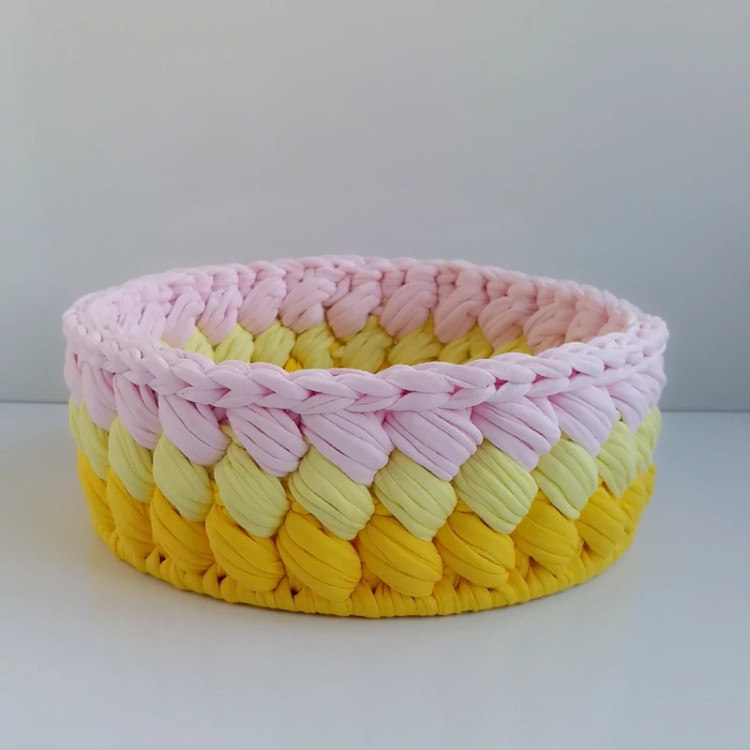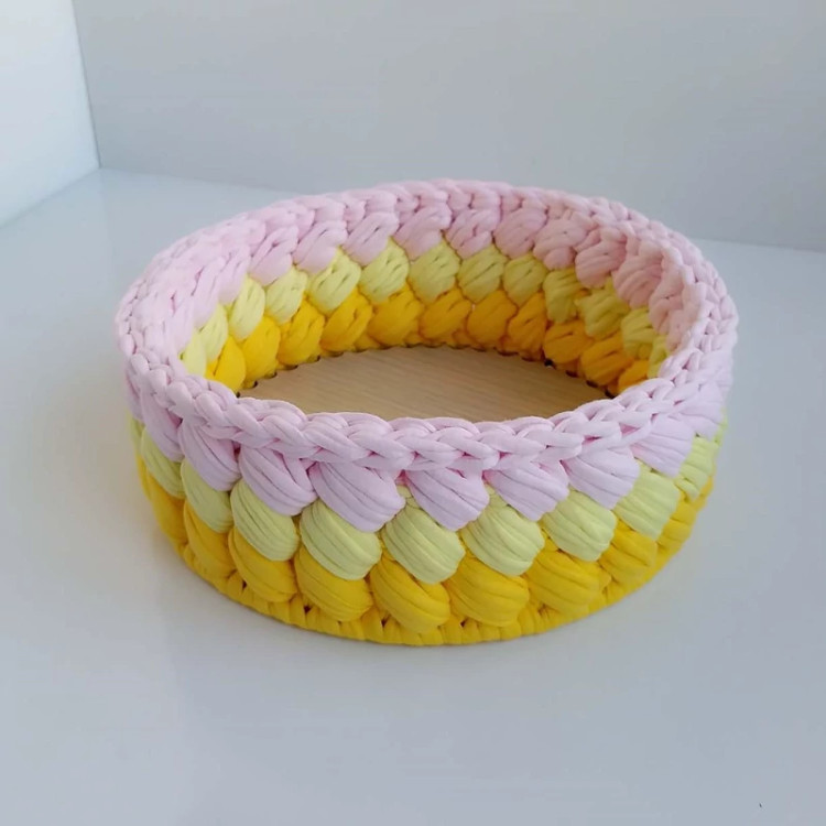 سبد بافتنی تریکو مدل گندمی(سبد دستبافت نظم دهنده وسایل میز آرایش )