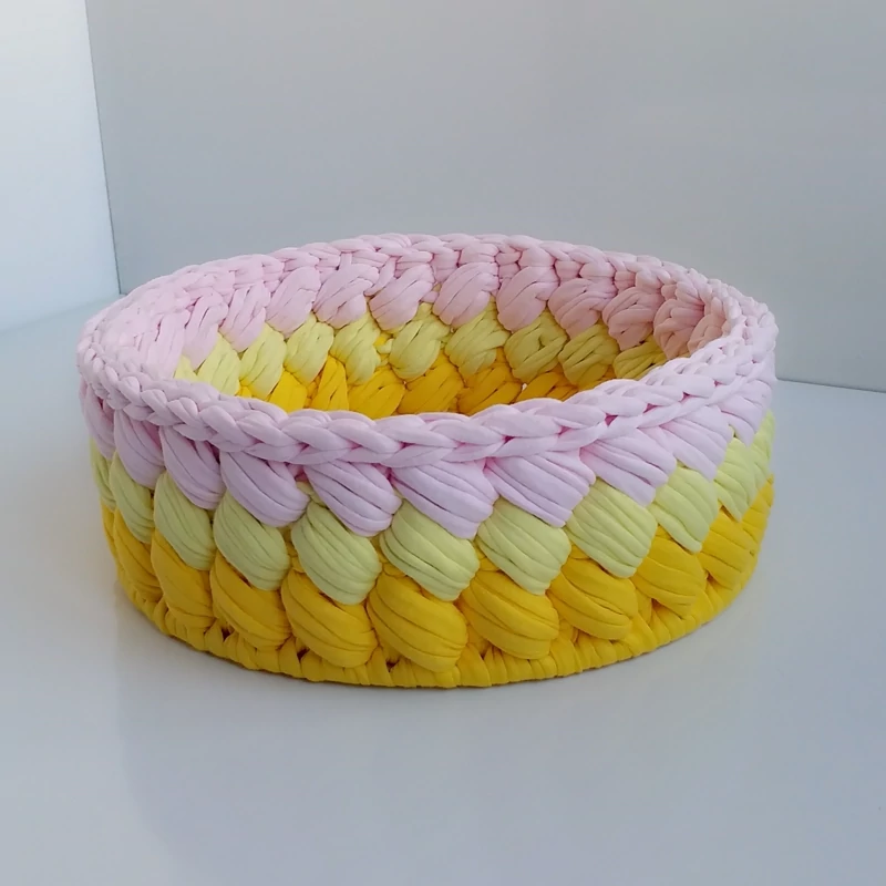 سبد بافتنی تریکو مدل گندمی(سبد دستبافت نظم دهنده وسایل میز آرایش )