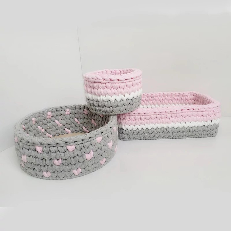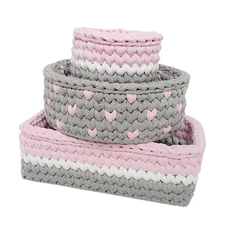 سبد قلاب بافی تریکو طرح سیسمونی مجموعه 3 عددی(سبد دستبافت نظم دهنده وسایل)
