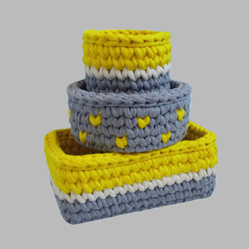 مجموعه سبد های تریکو طرح سیسمونی ،با کیفیت بافت بالا و استقامت دیواره بافته شده است .داری 3 سبد با طول 25 و قطر 20 و 10 سانتیمتر میباشد.مناسب سیسمونی کودک،اتاق کودک و دانش آموز و لوازم ارایشی و بهداشتی میباشد.