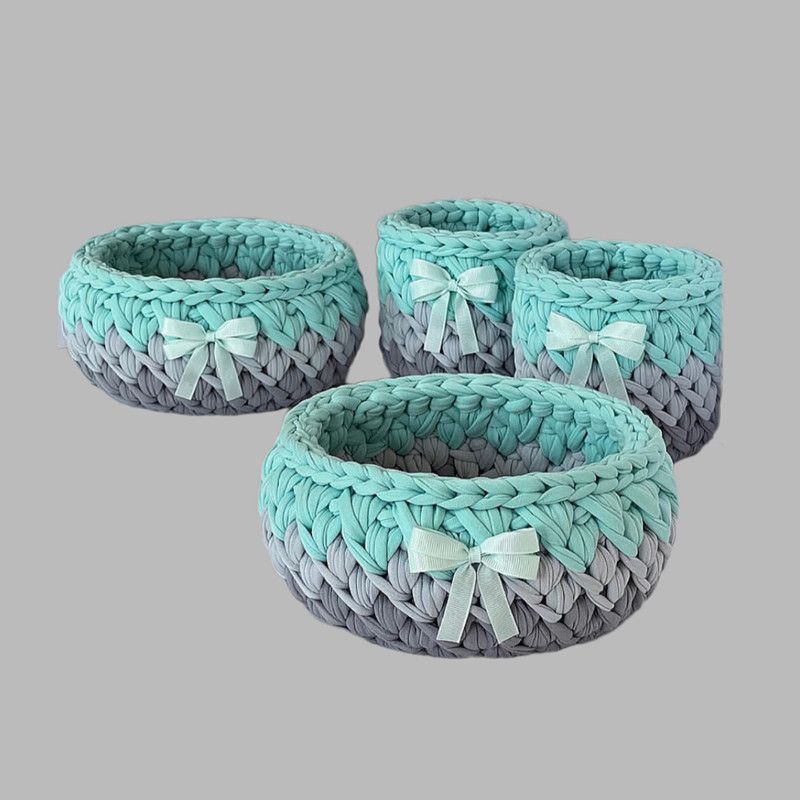 سبد قلاب بافی تریکو طرح کجراه کد 22 مجموعه 4 عددی