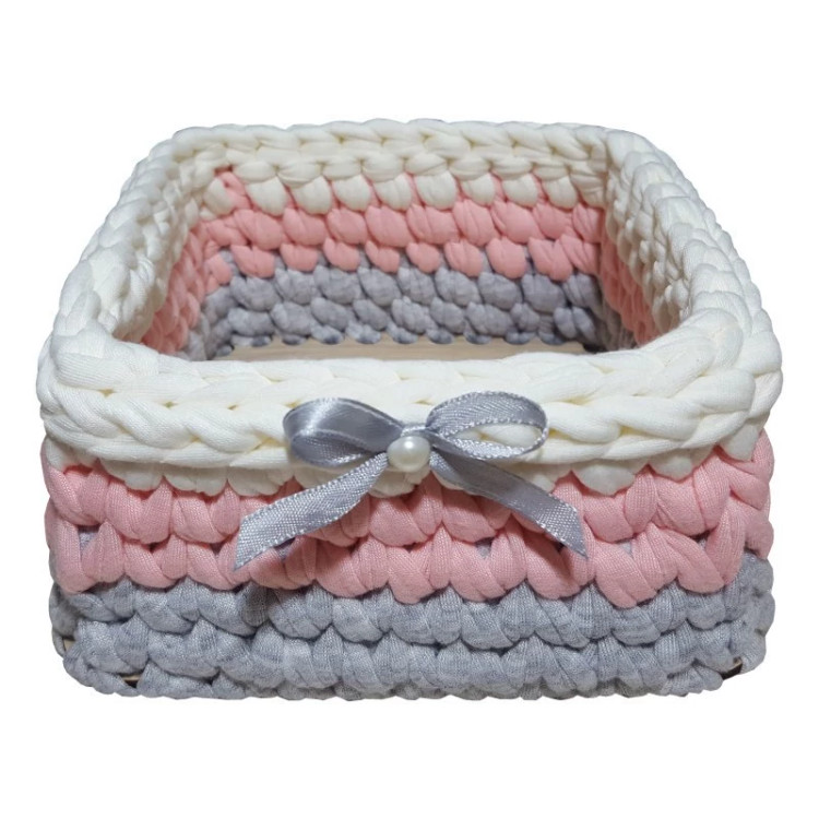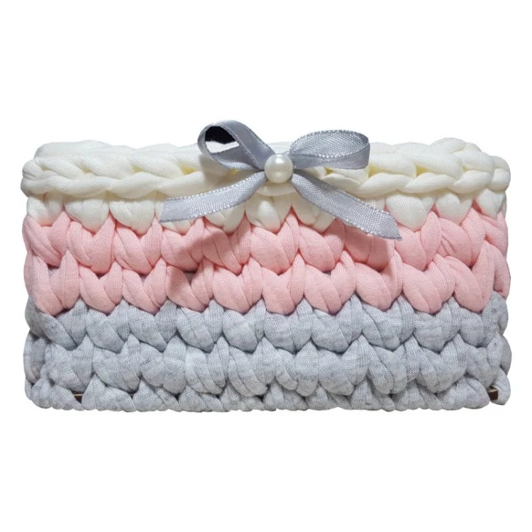 سبد قلاب بافی تریکو طرح هدیه(سبد دستبافت نظم دهنده وسایل میز دراور)