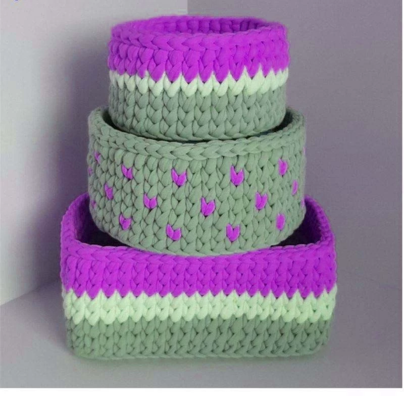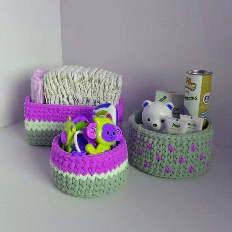 سبد قلاب بافی نظم دهنده اتاق تریکو طرح سیسمونی مجموعه 3 عددی(رنگ دلخواه شما)