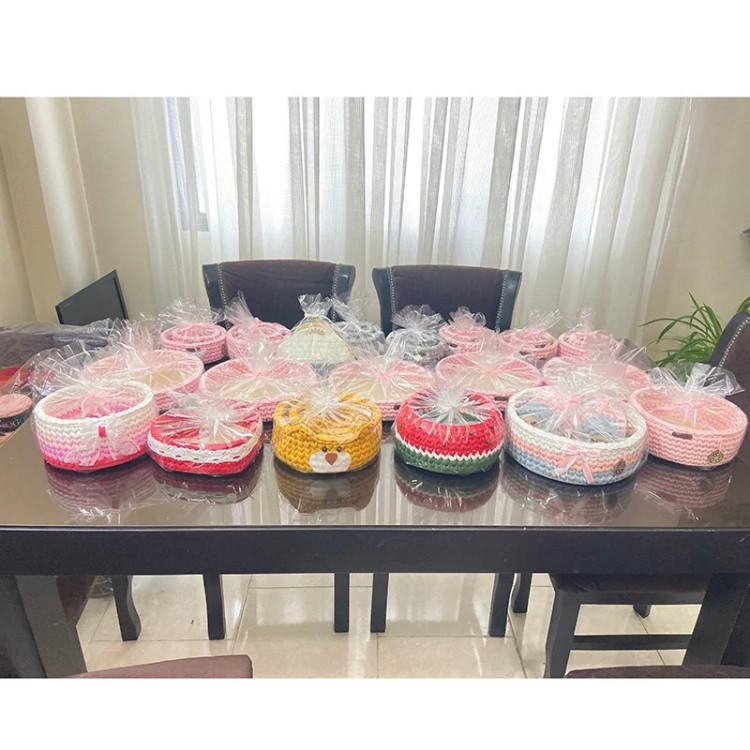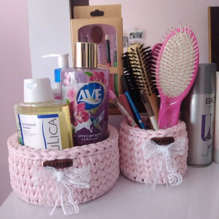 سبد قلاب بافی تریکو مجموعه 2 عددی(سبد دستبافت نظم دهنده وسایل آرایشی و غیره)