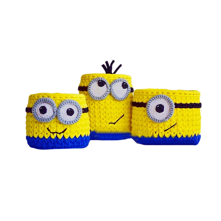 سبد بافتنی تریکو مدل مینیون مجموعه 3 عددی