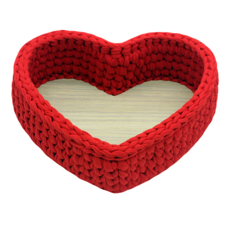 سبد قلاب بافی شده تریکو طرح قلب با کفی چوبی بافته شده با متریال درجه یک و با کیفیت ترین نخ تریکو با دوام و استحکام بالا مناسب برای استفاده در نظم دهی به وسایل خانه و اتاق و همچنین به عنوان باکس کادویی برای مناسبت های مختلف (روز مادر ، روز معلم ، تولد و... )میباشد