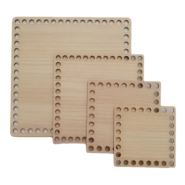 برای بافت راحت تر و زیبایی بهتر سبد های تریکو بافی از کفیهای مخصوص استفاده میشود. نکته مهم این محصولات رعایت فاصلهی مناسب بین سوراخها و قطر آنها است که به زیبایی بافتهی شما کمک خواهد نمود. در این پک، یک کفی مربع به ضلع 10سانتی متر، یک کفی مربع به ضلع 12سانتیمتر و یک کفی مربع به ضلع 15سانتیمتر و یک کفی مربع به ضلع 20 سانتیمتر و با ضخامت استاندارد 2.8 میلی متر قرار داده شده است.